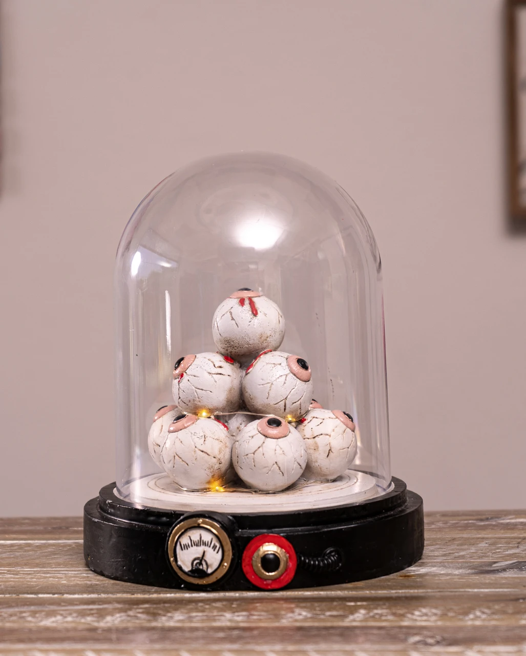 Lieferumfang: 1 x Beleuchteter Augenhügel unter Glashaube 18cm