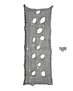 Der Halloween Lumpenstoff Schwarz ist ein locker gewebtes Tuch mit zerfetzter Optik. Du kannst den Gewebe Stoff als Halloween Wanddeko verwenden, aber auch als stimmungsvolle Tischdeko sieht der Vorhang in Kombination mit Kerzen und Totenschädeln einfach gruselig aus. Der Halloween Lumpenstoff Schwarz ist ca 60 x 300 cm groß und schwer entflammbar. Entdecke auch unser Greaues Deko Netz und der Lampenschirm Überwurf aus schwarzer Spitze machen deinen Partykeller zum stimmungsvollen Blickfang.