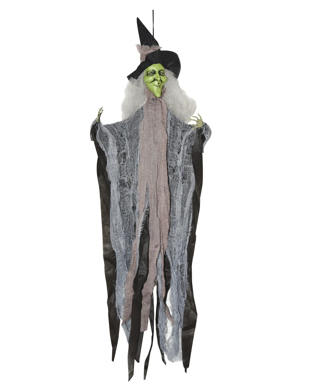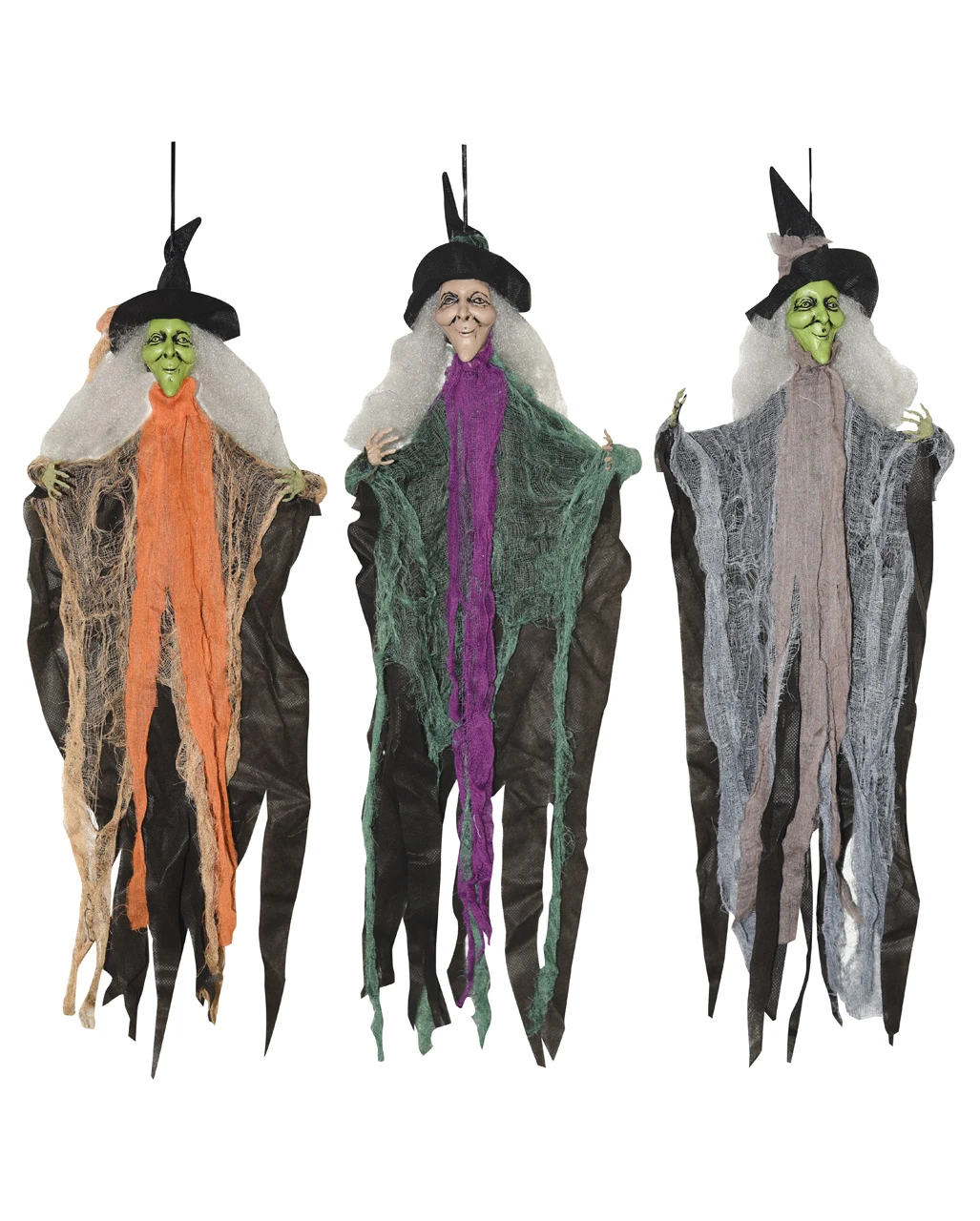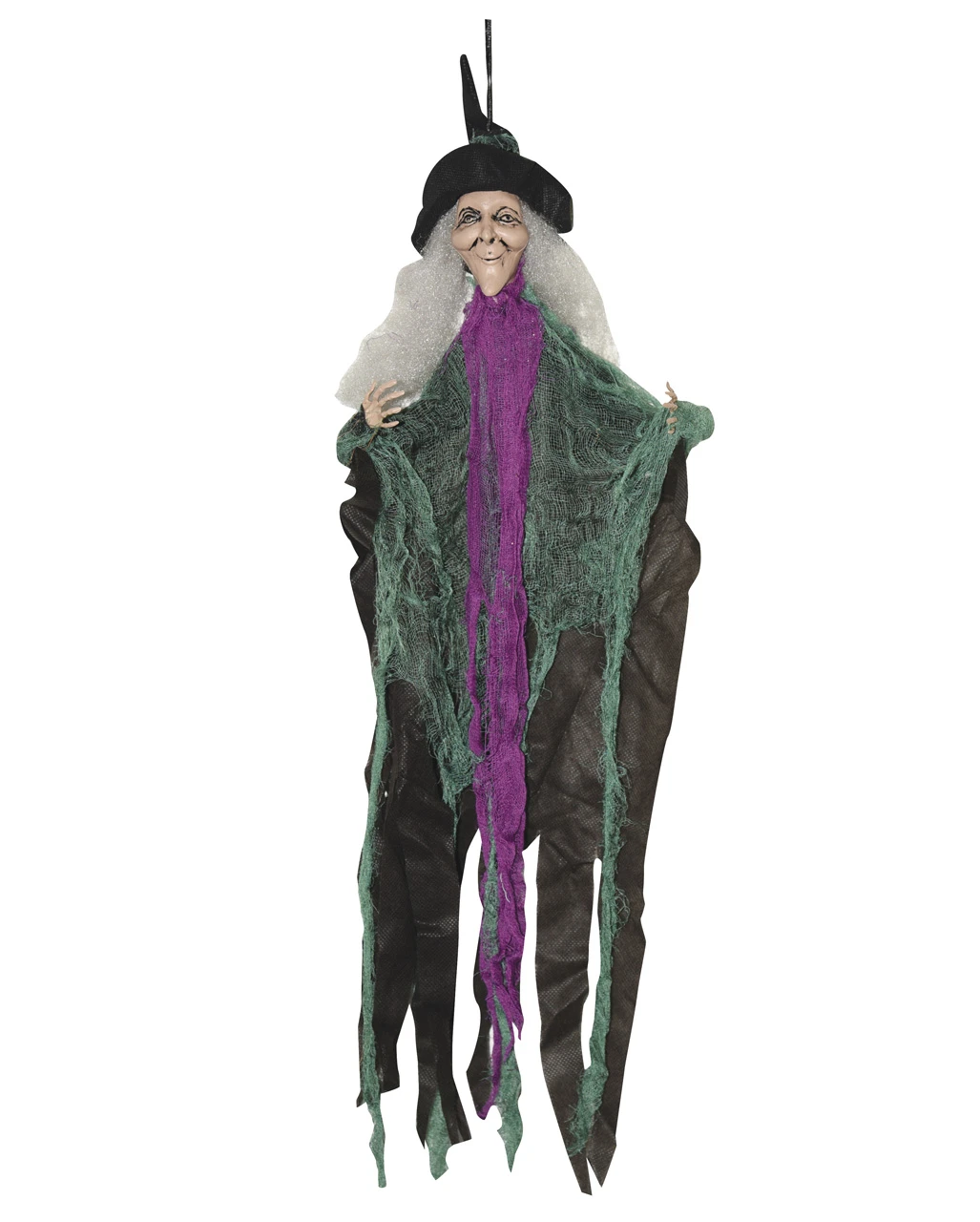 Bestelle jetzt eine der drei verschiedenartig gekleideten Hexen. Die klassische Märchenhexe als Hängefigur wird entweder mit einem giftig grünem Gesicht oder mit beigem Antlitz verschickt, während sich die Fetzenkleider in der Farbe zusätzlich unterscheiden können. Ganz gleich, um welche kombination es sich am Ende handelt, wir sind uns sicher, dass die Hexe mit biegsamen Armen & Fetzenkleid, bei dir zu Hause für Gruselstimmung sorgt.