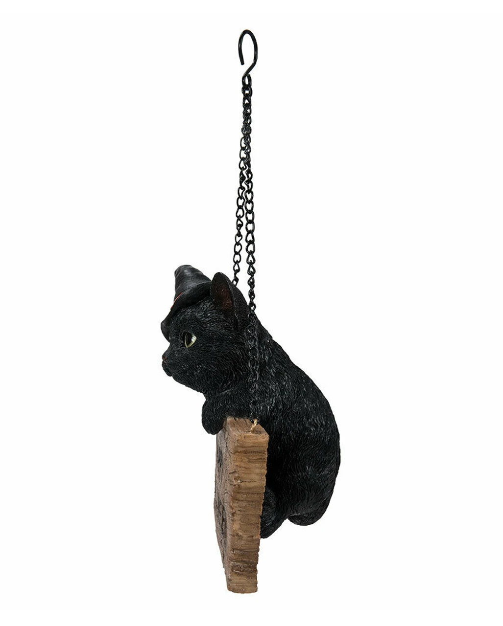 Putziges Hexen Kätzchen mit Hut als Halloween Türdeko