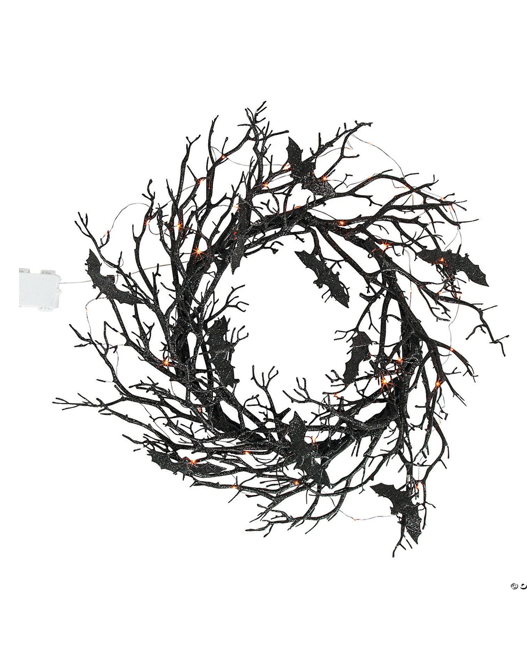 Schwarzer Gothic Kranz mit Fledermäusen & LED Licht