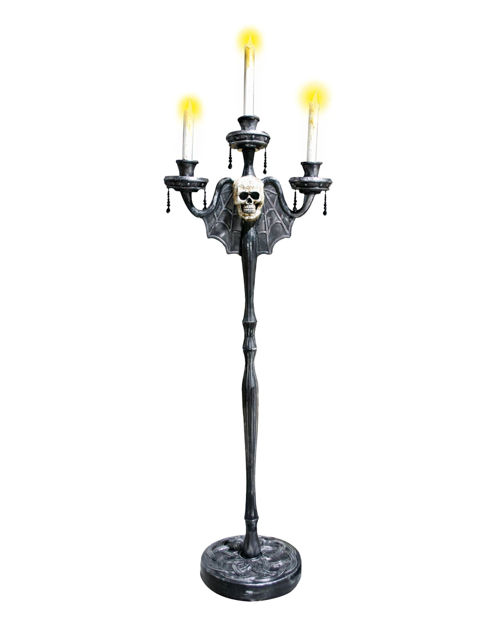 Von Geisterhand über dem Boden schwebender Kerzenständer als Halloween Deko