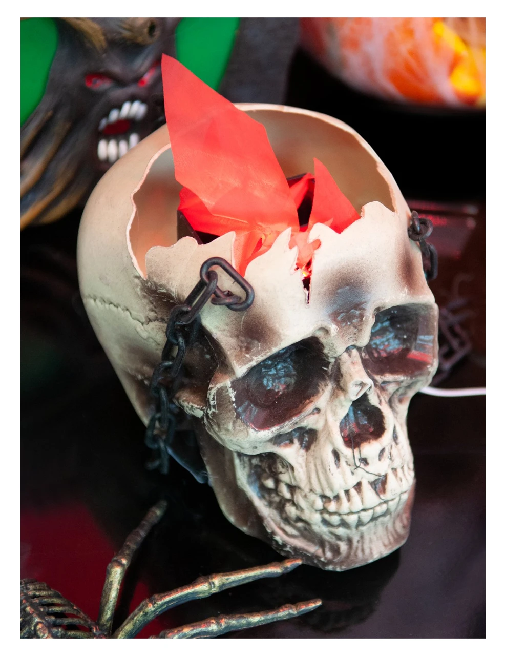 Stimmungsvolle Schädellaterne mit Licht- und Bewegungseffekten